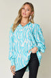 Double Take Full Size Printed Smocked Long Sleeve Blouse Plus Size