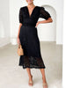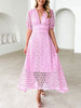 Eyelet Lace V-Neck Midi Dress with Puff Sleeves