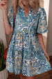 Paisley Floral V Neck Short Sleeve Mini Dress