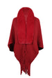 Fringe Detail Long Sleeve Ribbed Poncho