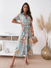 Vestido camisero midi de manga corta con lazo estampado en la cintura