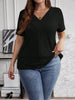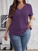 Camiseta de canalé de manga corta con cuello en V y talla grande