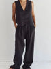 Conjunto de chaleco con cuello en V y pantalones anchos de talla grande