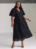 Vestido midi de encaje con escote en V y mangas abullonadas