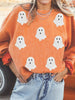 Halloween Ghost Sequin Patched Twisted Ribbed Texture Sweatshirt