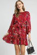 Umgee Ruffled Hem Printed Balloon Sleeve Dress
